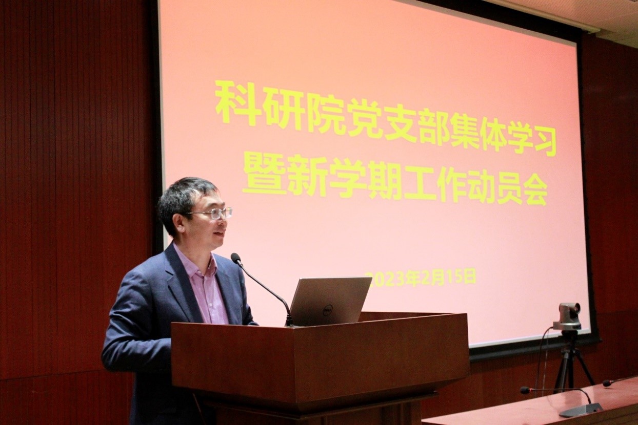 2月15日上午,科研院党支部集体学习暨新学期工作动员会在北洋园校区行政楼A102报告厅召开。副校长王天友出席会议并讲话。科研院全体工作人员参加会议。会议由科研院党支部副书记、常务副院长符银丹主持。
