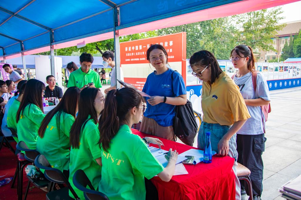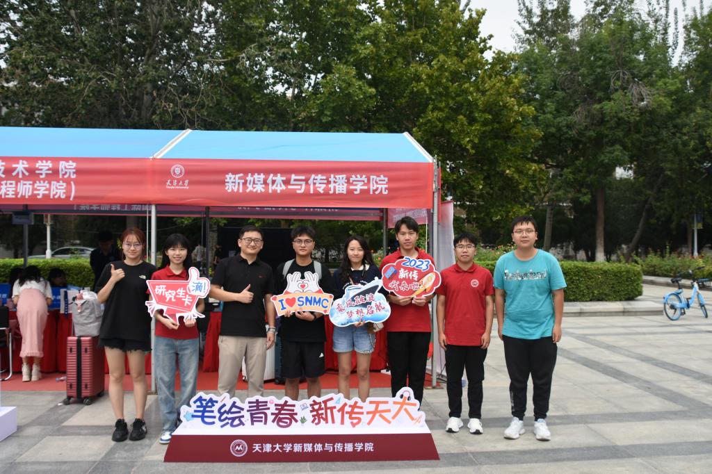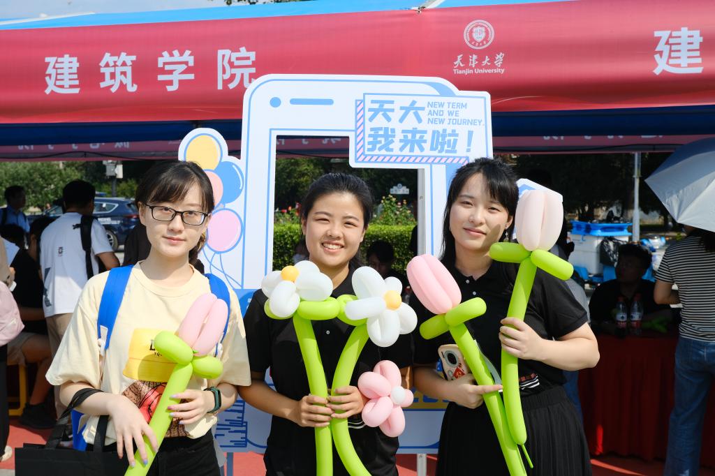 未来科技学院则别出心裁地准备了新生抽签互动游戏,解答出抽到的问题即可获得新生礼品,既增强了学生与学院间的互动,又狠狠地刷了一波好感。在人文艺术学院迎新帐篷,一打整齐的学院帆布兜十分抢眼,每一个袋子都贴心的用燕尾夹夹好学生的姓名标签,里面准备了新生入学的校园必需品。彰显了人文艺术学院的人文关怀。在建筑学院迎新点位,“天大我来啦”“建院欢迎你”“I❤建筑”等迎新标语热烈欢迎着新生的到来,强烈的归属感油然而生。“我们以拍照留念的方式,将新生们初入校园时热情满满的一刻定格记录下来,在北洋广场留下自己入学的第一张照片,以作为研究生学习生涯的起点,在未来回顾重温这些照片,让同学们始终提醒自己不忘初心,永远以饱满的姿态面对生活中的点滴小事。”建筑学院党委副书记王鑫说道。造型有趣,勾起同学们儿时回忆的多彩气球瞬间拉近人与人之间的距离,让新生同学们在第一天就热络起来,互相帮助,结识新朋友。