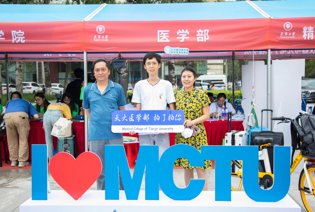 在教育学院迎新帐篷前,立着一块大大的迎新牌,上面的“教育”二字由所有新生的名字填写组成。可爱的学院吉祥物“桃小李”对新生寄寓了桃李满天下的期待,并且新生可以手持带有“桃小李”的标牌进行拍照,留下在天大的一份独家记忆。“今年迎新我们的党员先锋岗又是秒没,志愿者们非常给力,一个个热情洋溢难掩喜悦之情,一路陪同,帮助新生搬运行李、登记住宿、答疑解惑。”药学院研究生新生辅导员王海英告诉记者。在数学学院迎新点的桌上放着一个抽奖箱,新生可以通过抽奖获得一系列富有学院特色的文创产品,有以学院吉祥物小π为原型定制的贴纸、玩偶等等,可谓是奖品多多,惊喜连连。“我们是从山东过来陪孩子报道的,感觉学校的校园环境非常优美,各类学习和生活配套设施也都很完善,希望孩子在天大能够踏实前行,将来学有所成。”,说完理学院化学专业新生于相芸同学家长的脸上露出了喜悦的笑容,从她的言语中能感觉到对孩子能在天大学习的自豪和期待。