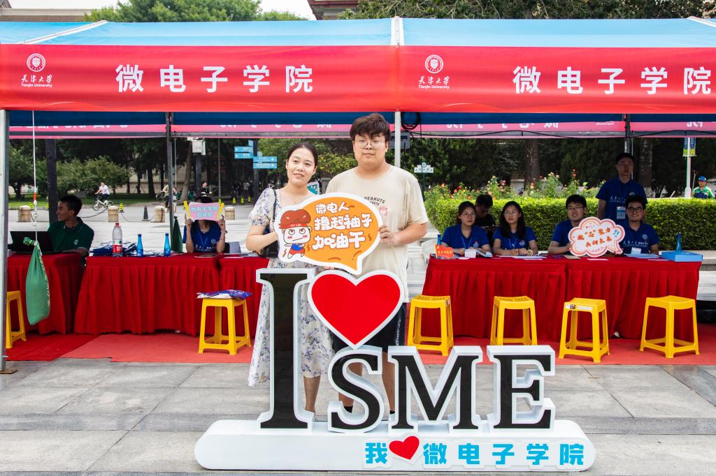 “材通穹宇,料定天下”这是材料科学与工程学院迎新点位的标语,也承载了对学院学生的美好寄望。学院准备了套圈游戏,学院徽章,定制可乐等小惊喜们欢迎着新生们的到来。化工学院为新生们准备了写“未来寄语”的明信片和装明信片的“未来信箱”,意在用这种新颖的形式让新生写下对未来的美好祝愿。建筑学院贴心地做了一块立牌——“热爱求学的城市”,上面贴心的描绘了天津市的地图和著名景区。研一新生王贞欢作为新生志愿者全程参与迎新,她说:“花自向阳开,人自向前走。天津大学建筑学院一直是我向往的学习校园,能够如愿来到天大建筑非常开心,新的平台,新的起点,“实事求是”的校训深深感染着我们。希望与老师同学们一起在未来收获更好的自己。”