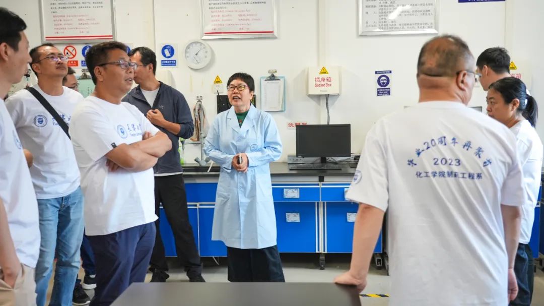 志愿者同学分批带领校友游览校园,欣赏北洋园校区的雄伟壮丽;并参观学院化工基础实验中心与技术实验中心,感受天大化工如何以顶尖水平对学生进行全方位的学识培养。89级校友王学恭参观后感受颇深,“目前的实验室仪器设备十分全面,而且接近产业生产实际,对于学生的在校培养和融入行业有着很强的基础提升,天大化工在这方面是很有优势的。”99级校友丁铂回忆过往,说道,“那个时候我们在老校区只能做基础实验,现在都能做与化工相关的更深入的实验了,设备日新月异。实验室的进步让学生不仅仅停留于纸上的理论,更深刻的体会了自己动手的实践。今天参观让我耳目一新,感受了天大化工的新模样新水平。”