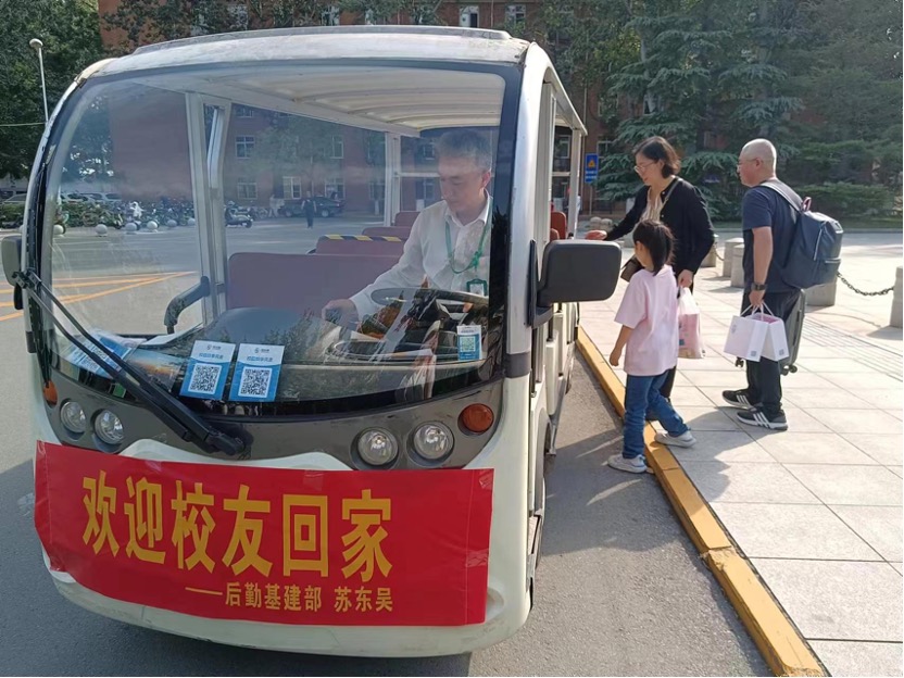 本次校庆活动中,后勤保障与基本建设部还特意为返校校友提供独特的暖心服务。在卫津路校区,物业为校友准备了免费的校园观光接驳车,供返校的校友乘车游览校园,围绕校园行驶一周。乘坐接驳车的校友,每趟赠送每人一张物业工作人员拍摄的校园风景照片,共计150余张,让大家在围绕校园行驶的过程中,不仅能够重温昔日走过的历程,也感受到了校园的细微处的变化。此外,在人员密集楼宇,物业提供了纸巾供校友们免费取用。校友们表示,学校的各项举措既暖心又贴心,像家一样温馨。