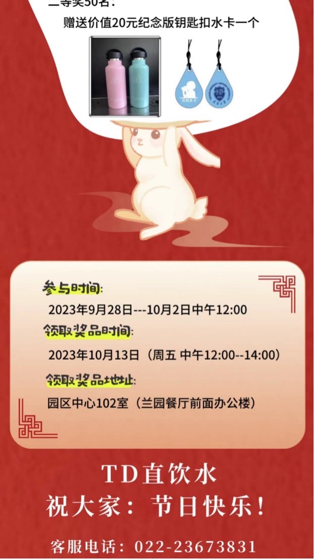 物业也准备了丰富的迎校庆暖心活动。如体育馆暖心服务可提供球类免费充气、球拍剪线、泳具借用和泳姿教学服务,北洋园宿舍内所有洗衣项目可享受8折的洗衣优惠,直饮水机更有奖品丰富的惊喜随机抽奖活动。