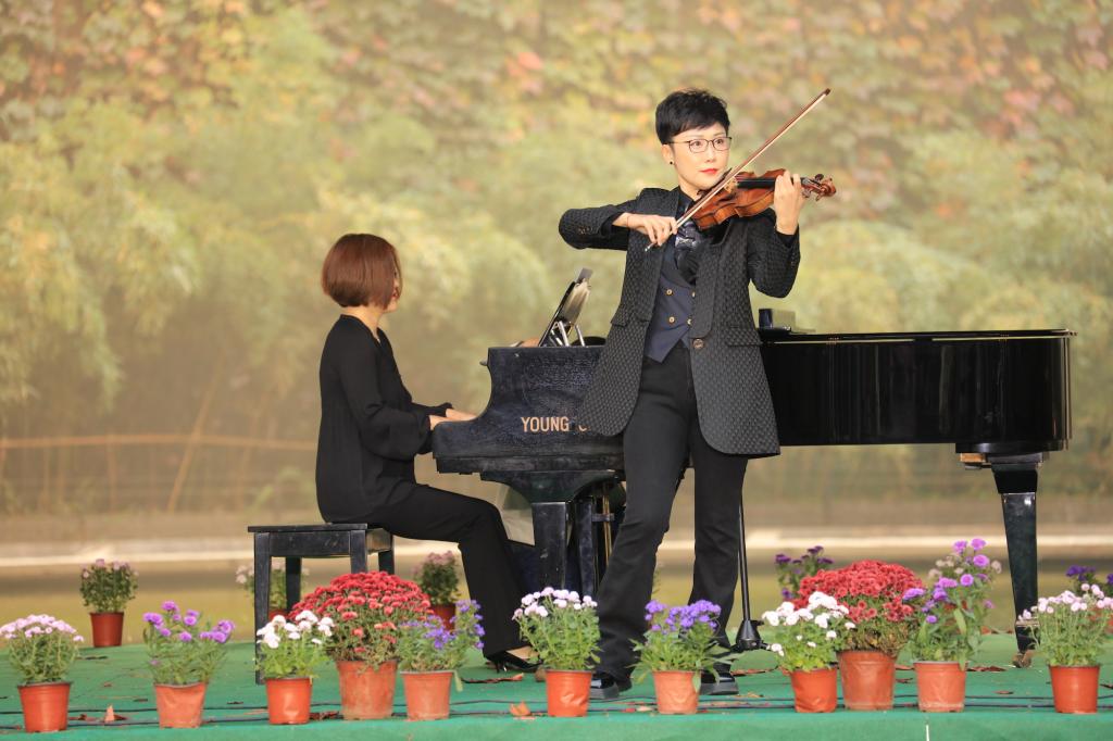 今年的红叶季诗歌音乐会,特地彰显了这一点。除了《秋天的礼物》诗文朗诵里有徐志摩描写秋天的诗歌《私语》之外,还邀请天津音乐学院教授唐甜甜演奏奥地利小提琴家克莱斯勒自己作曲的《中国花鼓》。1923年,徐志摩曾一手促成克莱斯勒在北京的演奏会,而这首《中国花鼓》正是当时的演出曲目。北洋合唱团也精心挑选了两支歌曲,一首林徽因纪念徐志摩的《别丢掉》,一首徐志摩脍炙人口的名诗《再别康桥》。“我挥一挥衣袖,不带走一片云彩……”气球在歌声中飞起,演出也在诗意里结束。