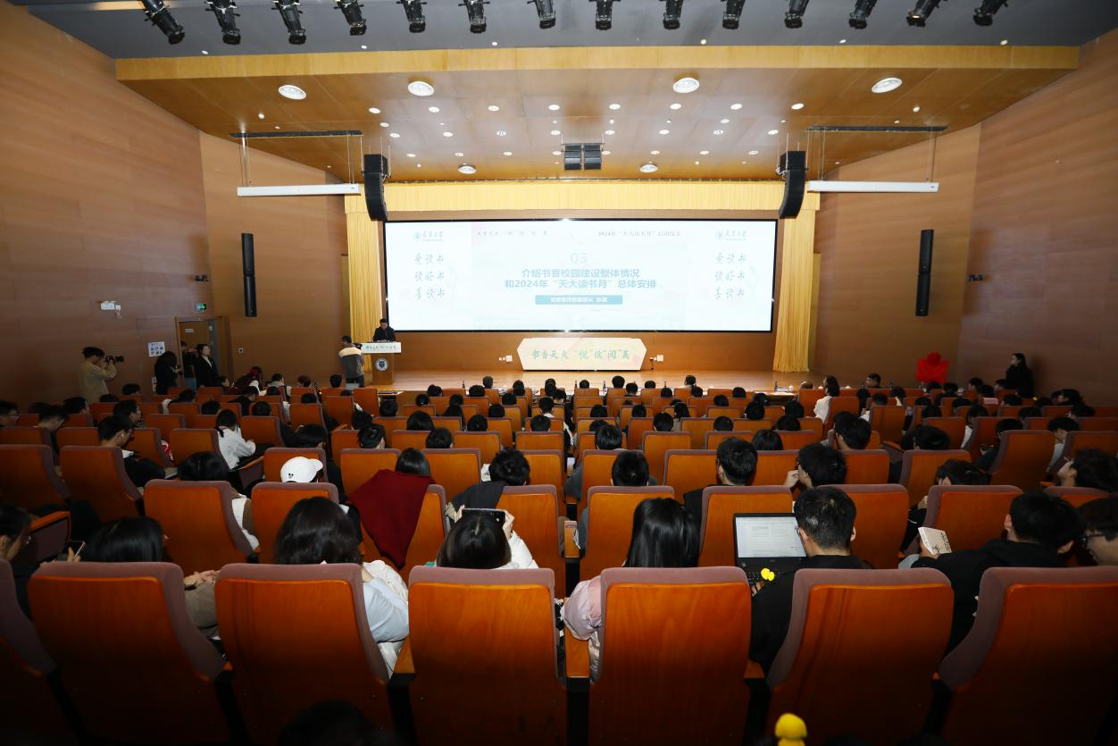 校党委常委、宣传部长杨欢,天津音乐广播、经典音乐广播、私家车音乐广播总监王格,图书馆、档案馆党委书记张超英,校团委书记李一昂出席活动。宣传部、学工部、校团委、图书馆及相关学院负责人、各学院师生代表和阅读类社团师生代表等近350人参加启动仪式。会议由宣传部副部长张昊主持。