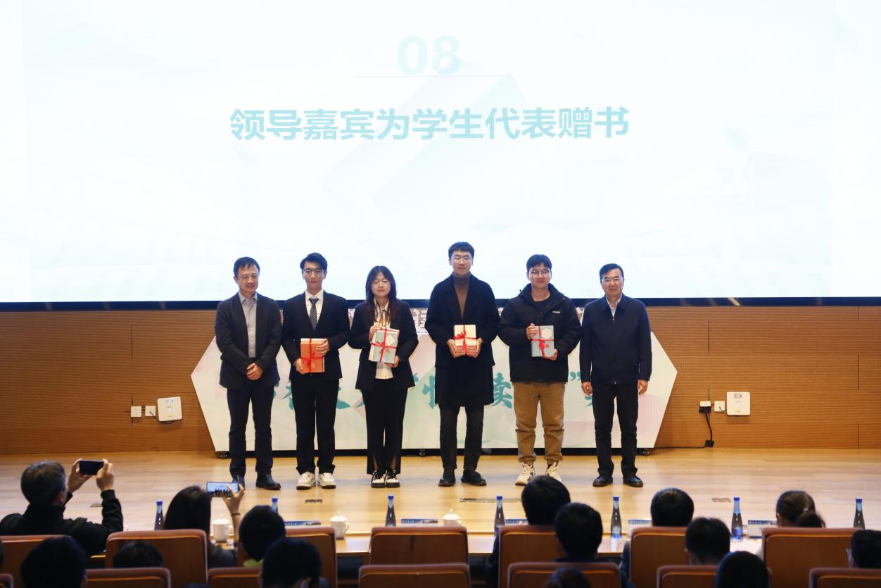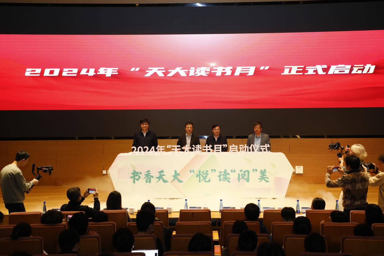 天津大学自2016年开始建立了“书香校园”常态化校园阅读机制,连续9年以“书香校园”建设为重要抓手,广泛开展格调高雅、形式多样的读书教育活动,以良好阅读风尚引领青年思想、以优质阅读产品创新阅读实践、以数字赋能阅读拓展阅读时空。启动仪式上,杨欢、王格、张超英、李一昂共同将水注入以“书香天大 ‘悦’读‘阅’美”为主题的“阅读之舟”,正式启动了2024年“天大读书月”。领导嘉宾为天津大学学生代表赠送了《共产党宣言》《习近平与大学生朋友们》《红色气质》《战争与和平》等经典著作。建筑学院建筑学系主任、天大女教授协会理事汪丽君教授,2024年书香天津·大学生“悦读之星”校内选拔一等奖、市级评选二等奖获得者周思源同学,作为师生代表在现场分享开卷之美、阅读之乐。