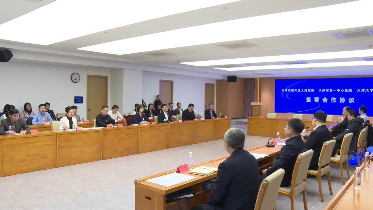 1月17日,南开区人民政府与天津市第一中心医院、天津大学医学部签署战略合作框架协议,以实际行动深入贯彻党的二十届三中全会精神,全面落实习近平总书记关于教育科技人才的重要论述和视察天津重要讲话精神,紧紧抓住“三新”、“三量”这个工作抓手,支持高水平建设天津大学先进医用材料与医疗器械全国重点实验室,助力天开高教科创园打造生物医药创新产业集群。区委书记马珊珊,区委副书记、区长聂伟迅,市卫生健康委副主任李洁,天津市第一中心医院党委书记况丹,党委副书记、院长王凤梅,天津大学副校长、医学部执行主任明东一行座谈并见证签约。