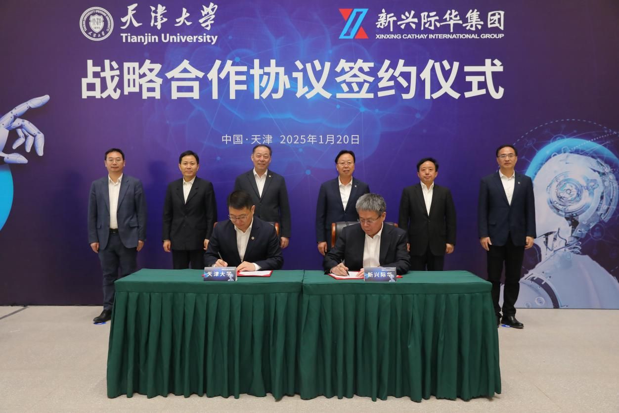 1月20日,天津大学与新兴际华集团有限公司战略合作协议签约仪式在脑机海河实验室举行。校党委书记杨贤金,新兴际华集团有限公司党委书记、董事长贾世瑞,市科学技术局党委书记、局长朱玉兵,滨海高新区党委书记、管委会主任夏青林,校党委常委、副校长王天友,滨海高新区党委常委、管委会副主任刘宪明,新兴际华集团有限公司副总工程师莫莉等出席并见证签约。副校长明东,新兴际华集团党委常委、总会计师王社教代表双方签署协议。活动由市科学技术局副局长谭振东主持。