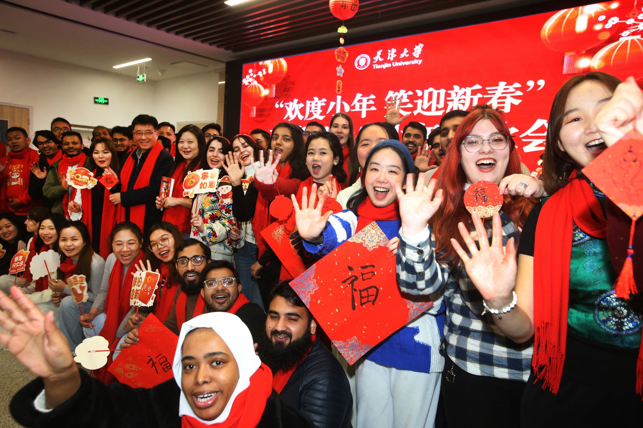 日前,天津大学组织中外师生开展一系列缤纷多彩的迎新春活动,向留校师生致以新春佳节的问候祝福。