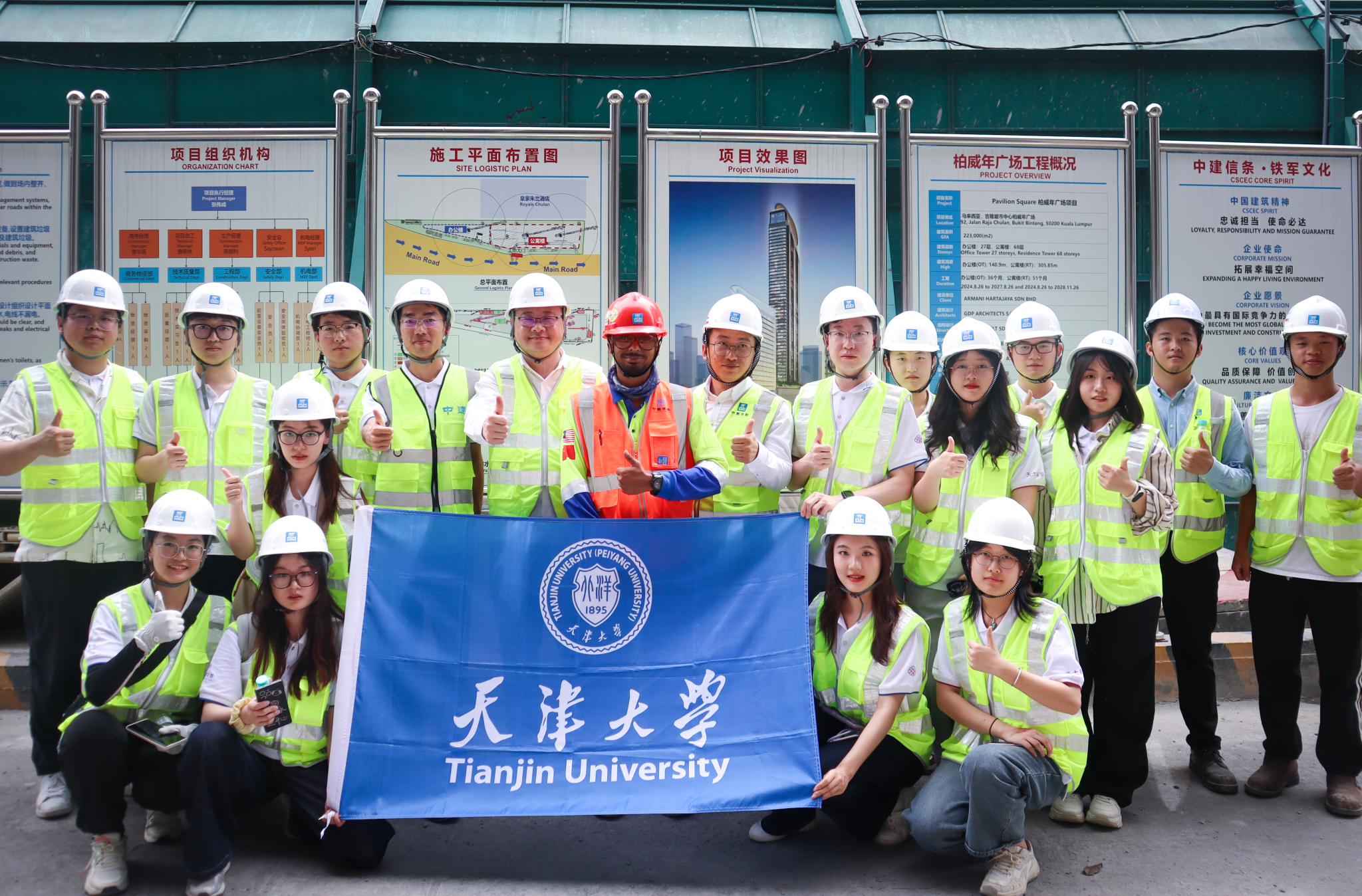 实践队由天津大学管理与经济学部牵头、精密仪器与光电子工程学院、建筑学院、电气自动化与信息工程学院、法学院等多学院的二十余名成员组成。他们的足迹跨越12260公里,在14天的实践之旅中走访新加坡、印度尼西亚、马来西亚等3个国家,中国电建市政集团南亚分公司、中国中铁印尼代表处、浙江华友钴业股份有限公司等9家企业,新加坡国立大学、双威大学等3所高校以及东盟能源中心等国际组织,实地调研了印度尼西亚雅万高铁、马来西亚吉隆坡柏威年广场工程、马来西亚槟城填海造岛项目等中资企业海外工程,切身体会中资企业在高质量共建“一带一路”倡议指导下扎根海外、深耕细作、推动地区发展的生动实践。