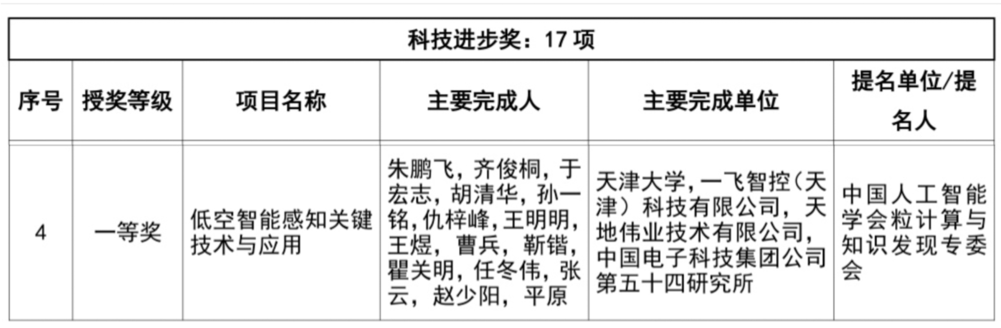 近日,中国人工智能学会公布了2024年度吴文俊人工智能科学技术奖的获奖名单。天津大学机器学习与数据挖掘团队牵头,联合一飞智控(天津)科技有限公司、天地伟业技术有限公司、中国电子科技集团公司第五十四研究所,凭借“低空智能感知关键技术与应用”项目荣获科技进步一等奖。