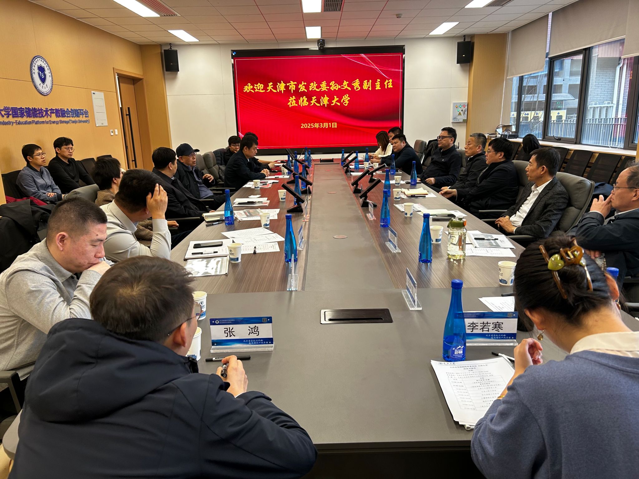 2025年3月1日,天津市发展和改革委员会党组成员、副主任孙文秀一行到访天津大学国家储能技术产教融合创新平台(简称“国家储能平台”),共同探讨储能行业发展。陪同到访的有天津市发展和改革委能源处处长刘奎建,国网天津市电力公司蓟州供电分公司副总经理苏有功、欧干新,天津市工商联副主席、政协委员、天津市大疆储能技术有限公司董事长于海林等领导与专家。中国工程院院士、天津大学国家储能平台主任王成山接待来访,未来技术学院党委书记凌国维,国家储能平台常务副主任焦魁,国家储能平台副主任朱丽及相关教师陪同会见。会议由焦魁主持。