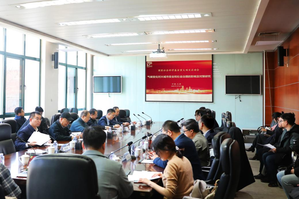 本站讯(人文社科处、项目组供稿)3月16日,国家社科基金重大项目“气候变化对大城市安全和社会治理的影响及对策研究”开题论证会在天津大学卫津路校区举行。来自天津市委宣传部、天津市城市管理委员会、中国气象局等有关部门,以及北京大学、复旦大学、华中科技大学、南开大学、天津大学、中南大学、首都师范大学、香港科技大学、海南大学、北京城市气象研究院、福建师范大学、华北电力大学等高校和科研院所共计30余位专家学者出席会议。开幕式由天津大学人文社科处副处长刘俊卿主持。