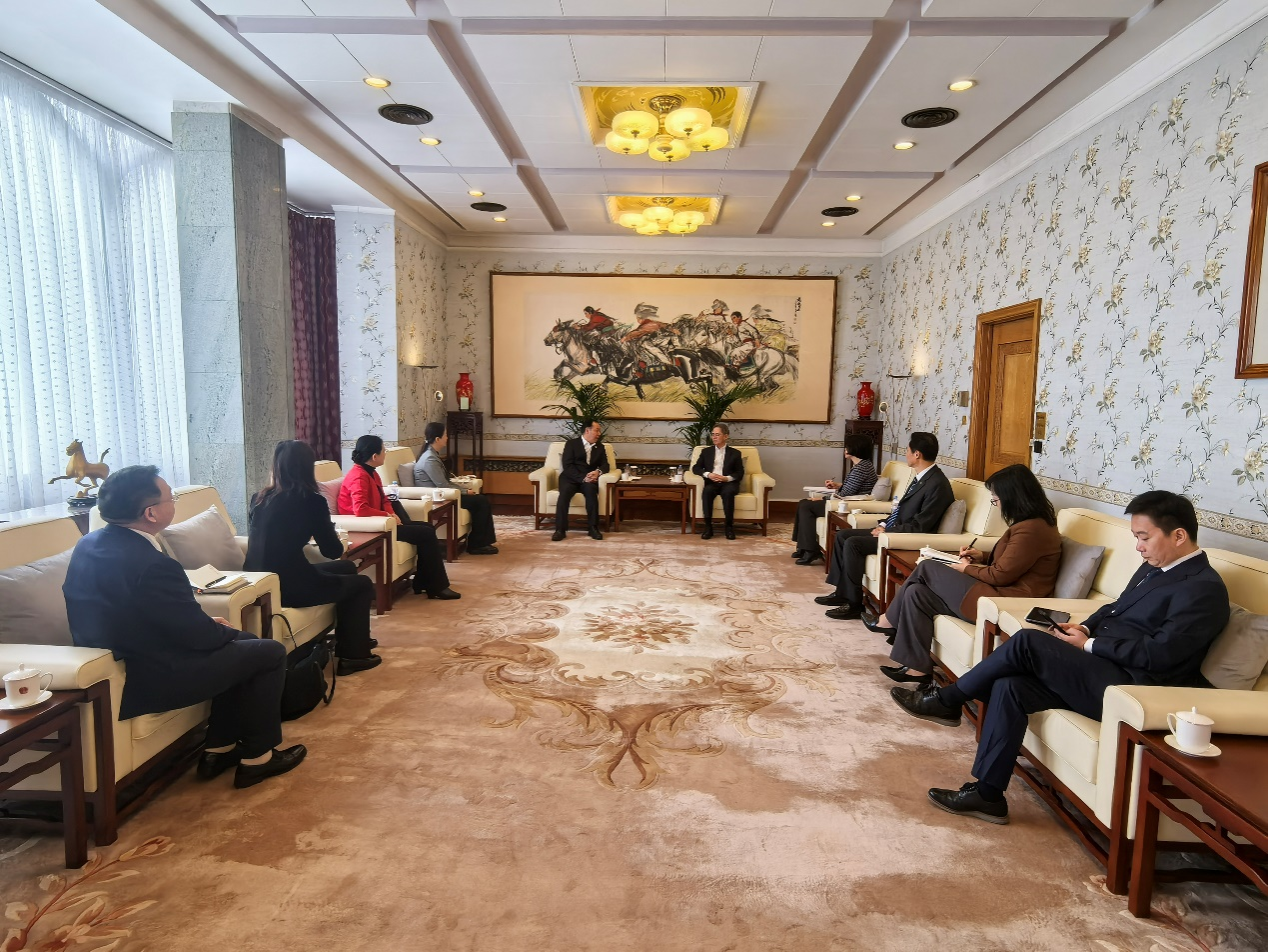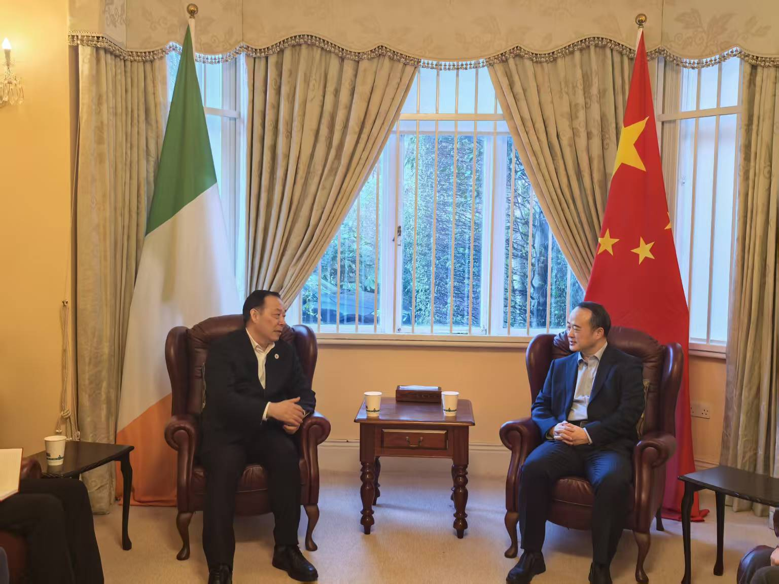 同日,杨贤金率代表团拜访中国驻爱尔兰大使馆,与大使赵希源会谈会见。杨贤金感谢大使馆对天津大学与都柏林大学长期合作给予的关心与支持,并简要介绍了天津大学近年来所取得的发展成就及此行出访爱尔兰的目标。赵希源对天津大学的快速发展表示赞赏,并对天津大学把握机会,深入推进与爱尔兰相关高校在科学研究、人才培养等领域的长期合作充分肯定,并表示大使馆将继续关心支持天津大学的发展,持续推动天津大学与爱尔兰YES项目、高校间联合培养、科研合作等方面的合作。大使馆教育事务一等秘书朱喜坤陪同会见。