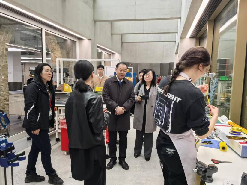3月24日,杨贤金一行访问伦敦国王学院,并与该校设计学科带头人进行会谈。双方介绍了各自学校的发展历程,特别是在设计相关学科建设、人才培养机制以及创新创业实践等方面的特色与成就。经过交流,双方在逐步推动教师互访、学生联合培养等方面达成合作共识。会谈后,代表团参观了工学院学生实践培养空间以及智能康复系统和可持续健康监测实验室。
