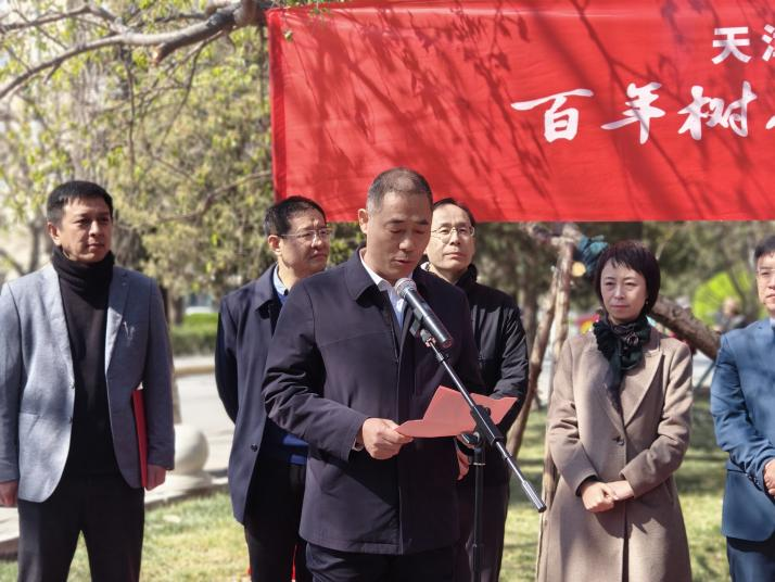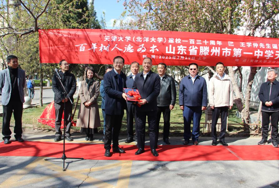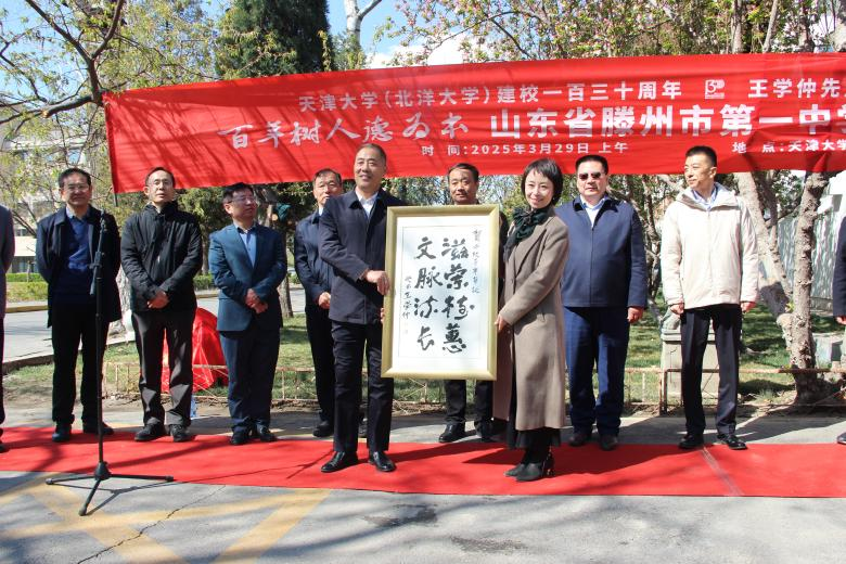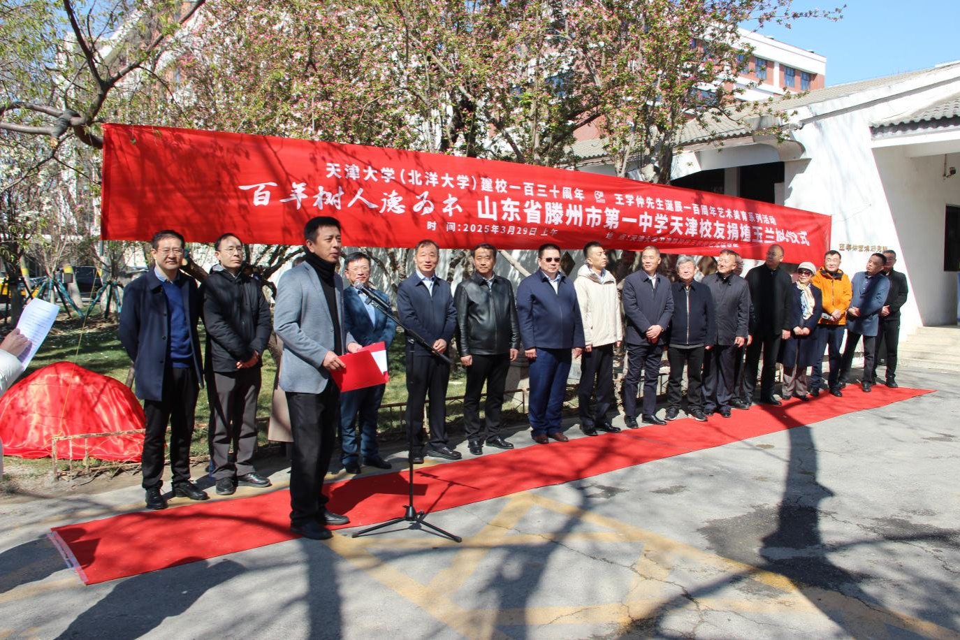 张鹏在致辞中指出,王学仲先生一生治学以“四我精神”为要旨,强调“家国情怀”与“艺必己出”融合贯通,体现出他对中华优秀传统文化传承发展的特殊使命感和崇高责任感。此次捐赠仪式,是津鲁两地在王学仲先生精神感召下,文化艺术频繁交流的生动体现。滕州一中天津校友会捐赠的玉兰树将以艺术为根、以文化为魂,在北洋校园书写新的篇章。