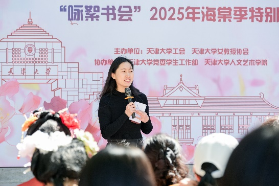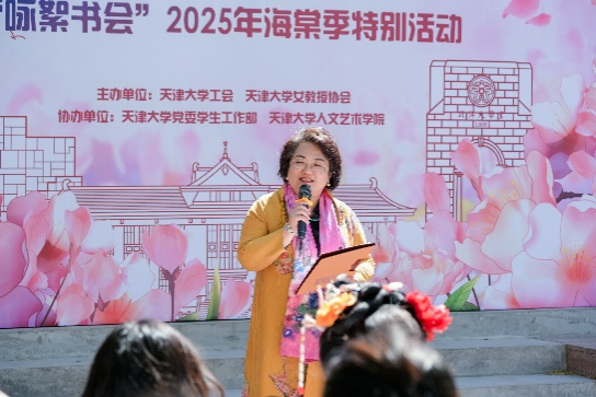 活动紧密围绕“育人”主题,从女学者细腻而独特的视角出发,用“柔肩担重任”“温柔而坚定”等温暖而有力的表述,生动展现出女性独有的特质。在古今文化的交融碰撞中,既有古典诗词穿越千年的优雅韵味,又巧妙融入“四个自信”“强国有我”等新时代强音,让传统文化在新时代语境下重焕生机,绽放出更加绚烂的光彩。女教授们还深情讲述与海棠有关的校园故事,那些充满温度的回忆,不仅增强了场景的画面感与感染力,更将海棠生长周期与育人过程、知识分子成长紧密关联,极大地丰富了活动的内涵,让每一位聆听者都能感同身受,沉浸其中。