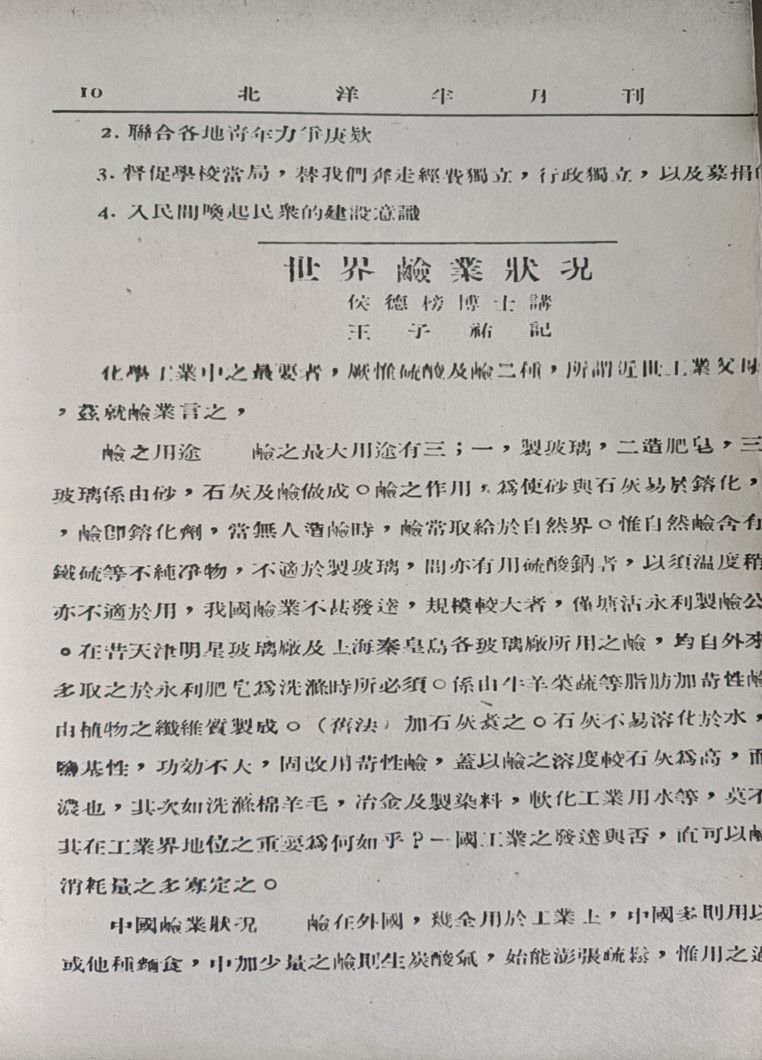 1925年,应时代产业、学科发展之需,工业化学终在北洋扎根。刘仙州校长改革学制,采矿、冶金两学门全面开设定性/定量化学分析、工业化学及气体分析实验,形成“理论-分析-应用”三级课程链。傅乐尔讲授工业化学理论,顾元礼主持化工试验,课堂直指炼焦、制酸等实业需求。此时北洋工业化学教育已跳出矿冶框架,显现出独立学科形态——从深奥金石学到气体分析,从定量实验到工程计划。此外,教师指导学生主动前往永利碱厂开展实习,将学业用于实践当中,三十载薪火相传,终使化工学科在北洋沃土抽枝展叶。