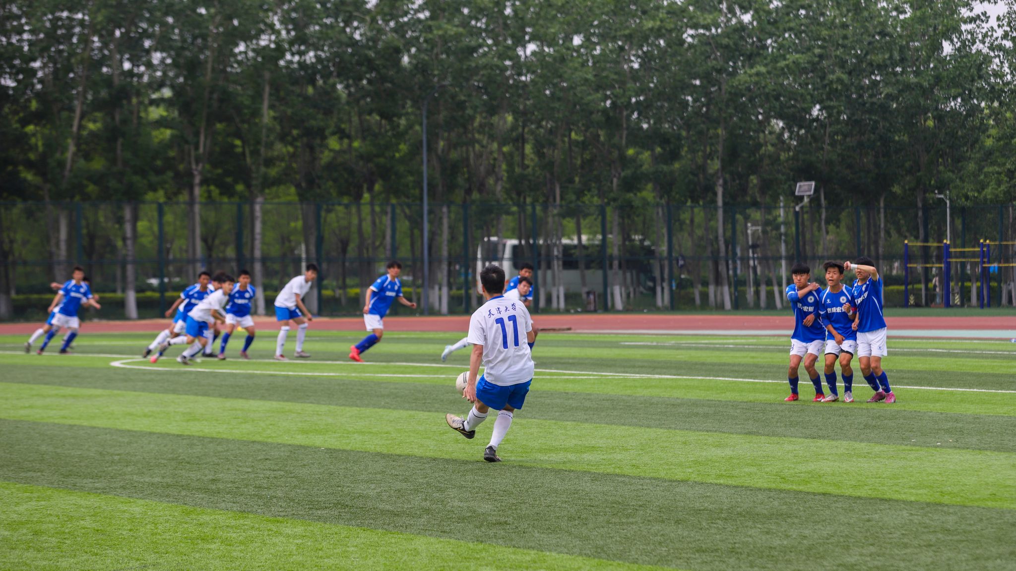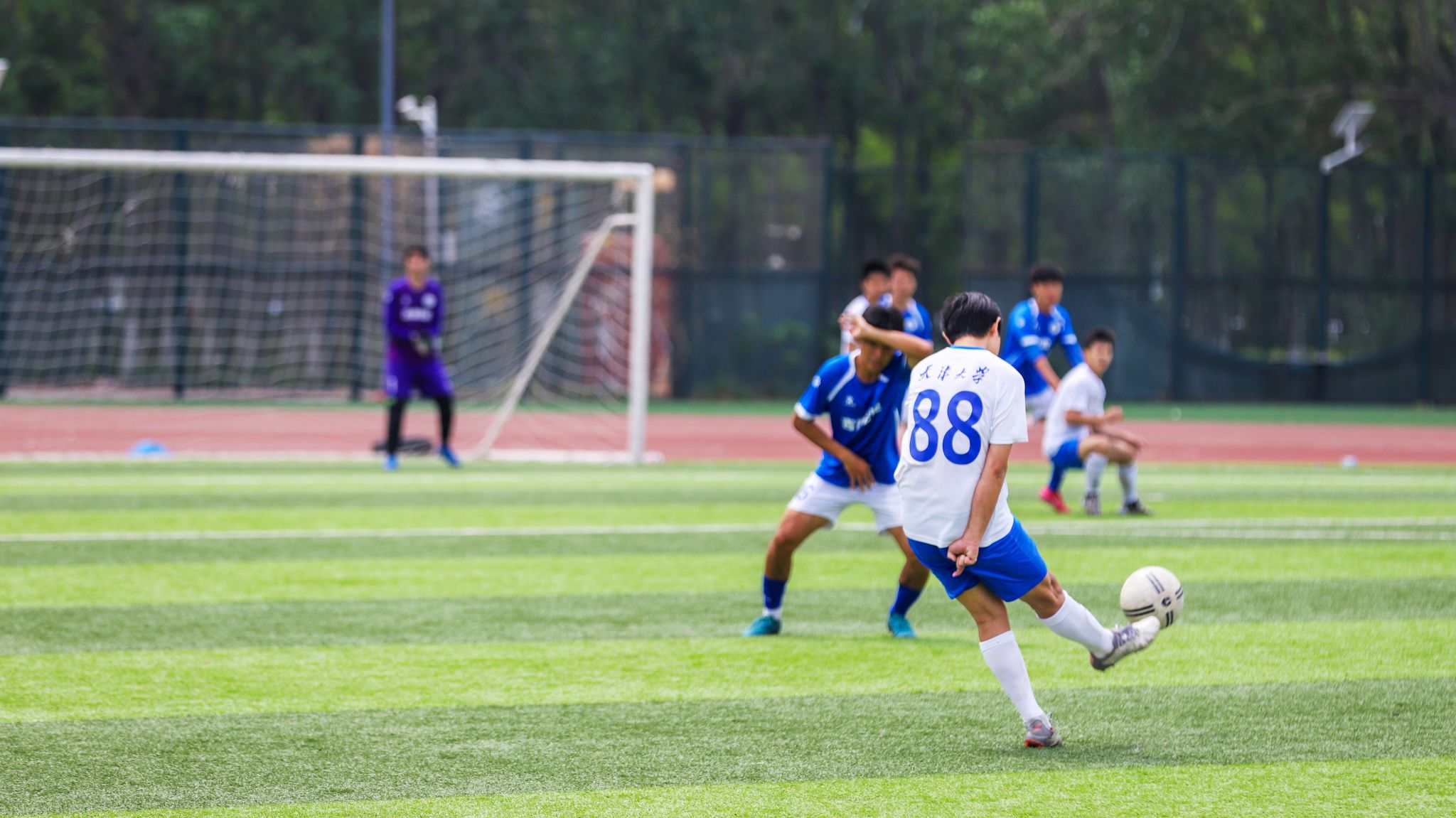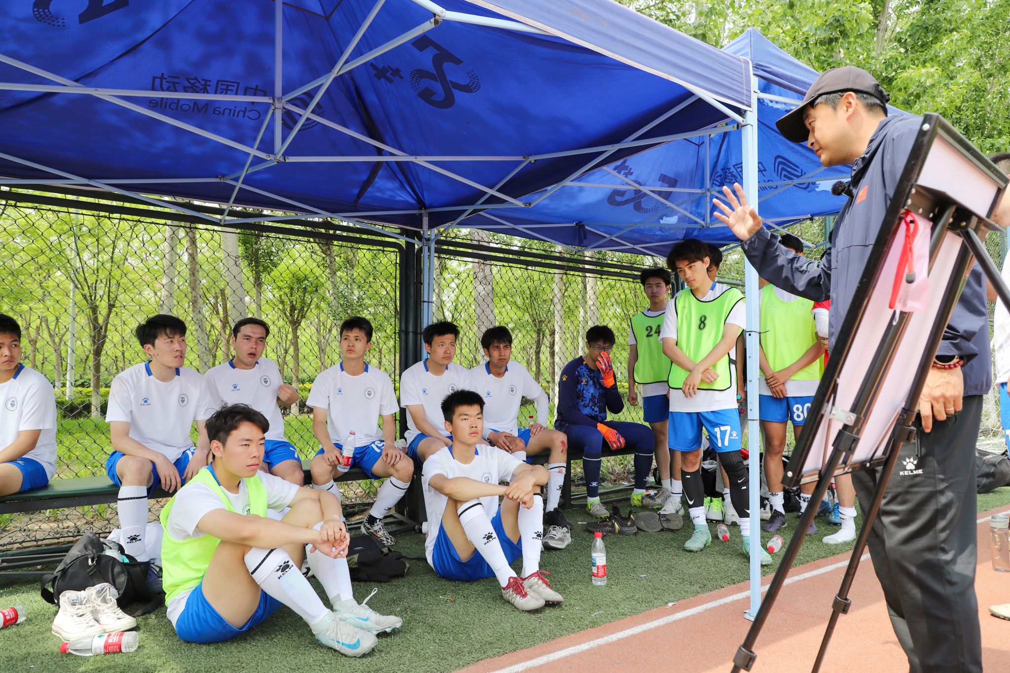 本场比赛,我校男子足球队在上半场被罚下一人的不利情况下,顽强拼搏,双方90分钟常规时间内战成平局。通过点球大战,最终以4比3战胜对手。