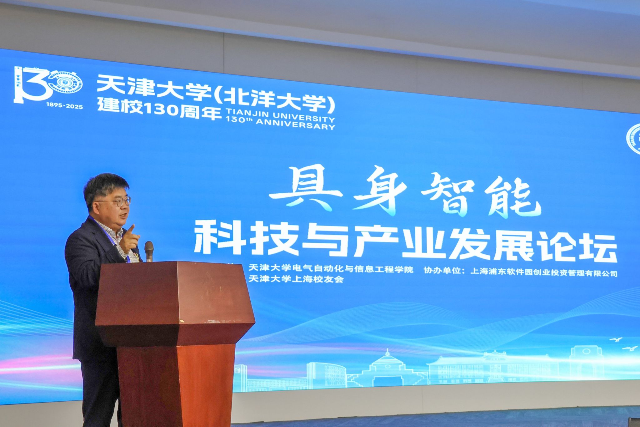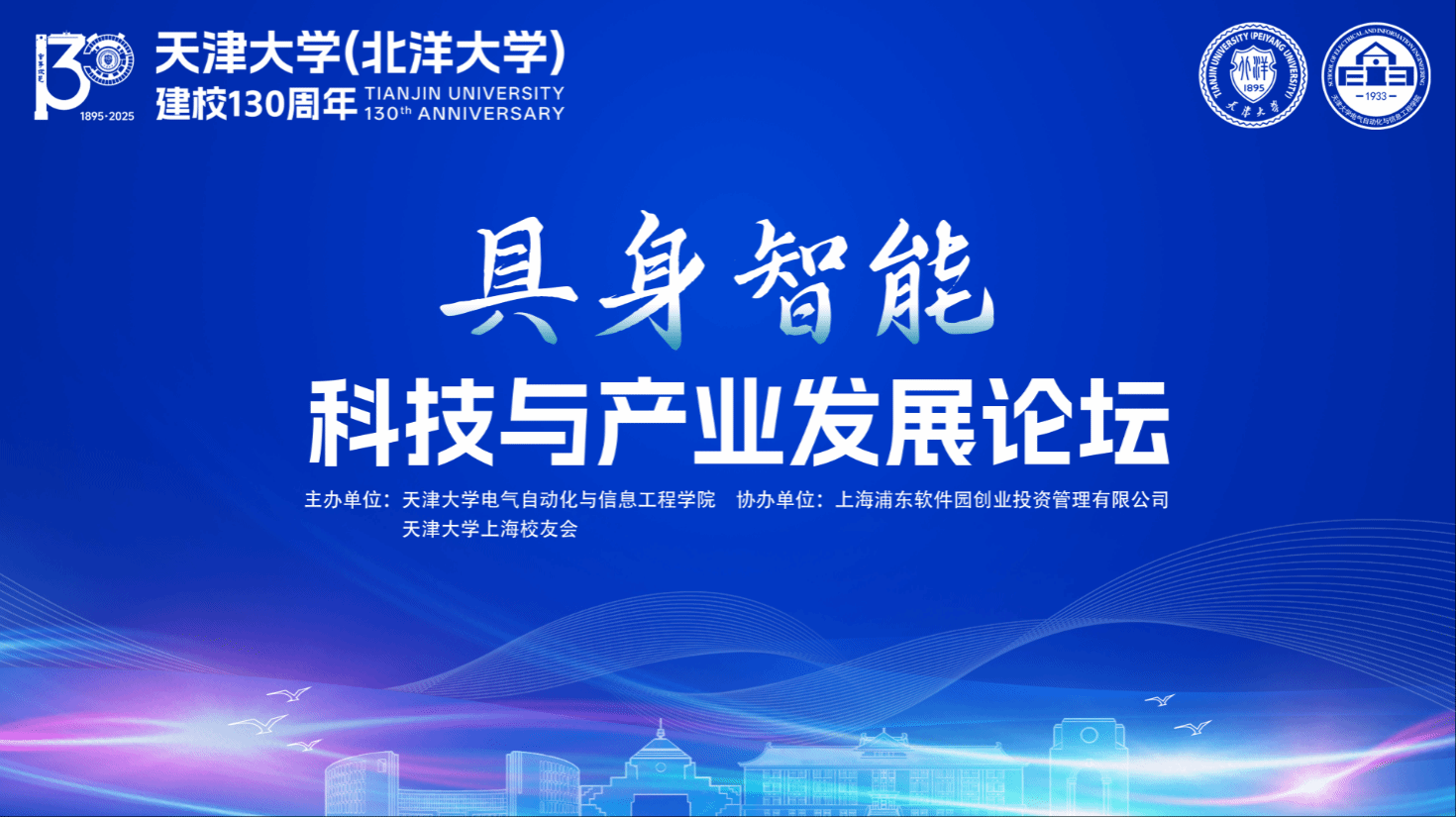 适逢天津大学建校130周年之际,2025年4月26日,由天津大学电气自动化与信息工程学院与天津大学上海校友会主办,上海浦东软件园创业投资管理有限公司协办的具身智能科技与产业发展论坛在上海浦东软件园顺利举办。本次论坛围绕科技创新与产业发展深度融合主题,聚焦具身智能领域前沿动态,吸引了来自投资机构、学界、产业界近百位专家校友汇聚一堂,共同擘画未来产业蓝图。