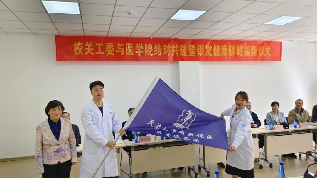 医学院党委高度重视健康驿站的建设,成立了“有医说医”为老服务团,天津大学退休教职工协会主任张文茹为服务团授旗。