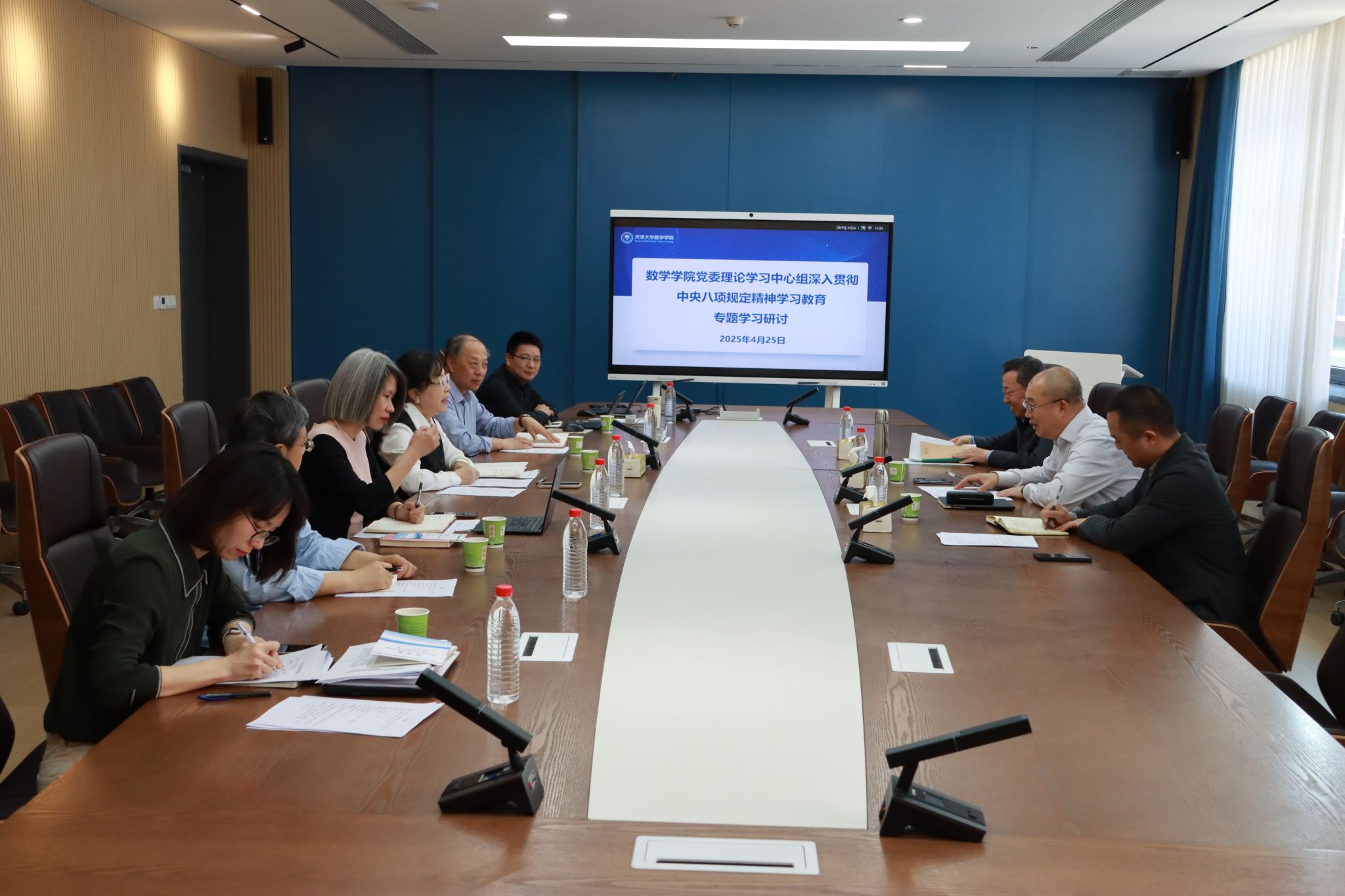 4月25日,数学学院党委理论学习中心组在58教210会议室开展深入贯彻中央八项规定精神学习教育专题学习研讨。校党委副书记、纪委书记、监察专员李炜,党建督导员马春有,联系指导组成员、纪检监察机构办公室主任程超超参会指导。会议由数学学院党委书记魏建宏主持。