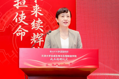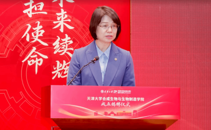 市委教育工委常务副书记、市教委主任荆洪阳在致辞中指出,天津大学成立合成生物与生物制造学院,是主动服务国家战略、推动高等教育内涵式发展的有力举措。他希望学院能够立足高远,充分依托天津大学的学科优势和科研实力,加强顶层设计,优化资源配置,构建跨学科协同创新机制,打造高素质师资队伍,培养面向未来科技发展需求的复合型人才,产出具有国际影响力的重大科研成果,引领我国合成生物与生物制造领域的发展。他表示,天津市教委将对新学院的建设发展给予全力指导和支持,推动学院为我国高等教育事业和经济社会发展做出新的更大贡献。
