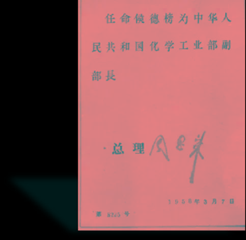 1958年3月7日,周恩来总理签署的国务院文件,任命侯德榜为化工部副部长