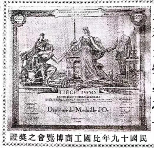 1930年,“红三角”牌纯碱荣获比利时工商博览会金奖