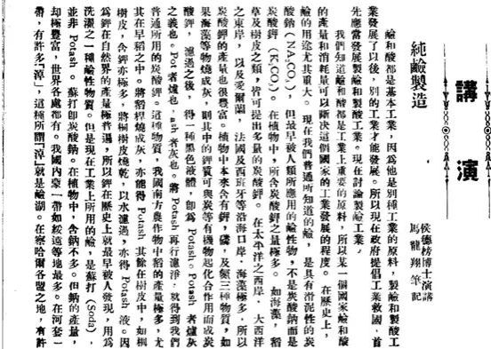 刊登在《北洋周报》上的侯德榜博士演讲《纯碱制造》