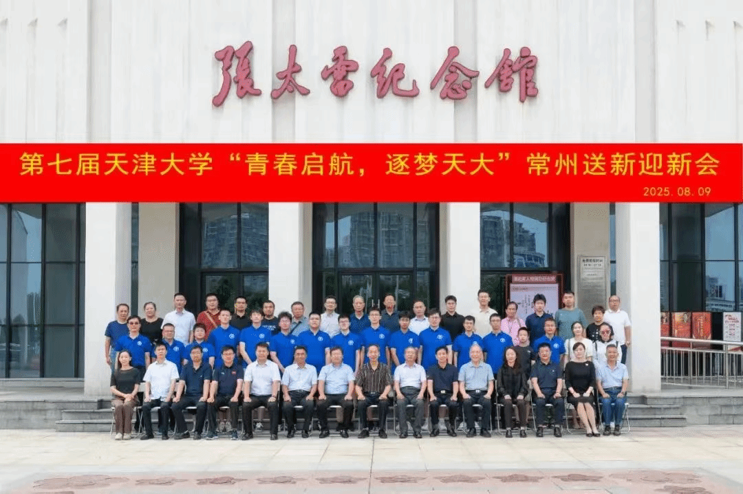 第七届天津大学“青春启航,逐梦天大”常州送新迎新会8月9日在江苏省常州市张太雷纪念馆隆重举行。常州市政府原副市长、常州工学院原党委书记张力航,天津大学校长助理黄辉,天津大学校友与基金事务处副处长、校友总会副秘书长谷钰,天津大学江苏招生组原组长、常州校友会名誉会长花建锋,常州市委宣传部原副部长朱明辉,常州市教育局二级调研员徐小平,常州日报融媒编委会专职编委沈向阳,常州三杰纪念馆馆长马岚,原中国剪报社社长、常州校友会名誉会长王荣泰,天津大学“泰来绍熙教育发展基金”发起人、常州剪报发展有限公司董事长、总经理王琳涵,天津大学常州校友会会长钱曙珊,今年考入天津大学、获得“泰来绍熙教育发展基金”的8位同学和家长,以及今年来常工作的15名天津大学应届毕业生等共计70余人参加了活动。会议由天津大学常州校友会执行会长傅德铭主持。