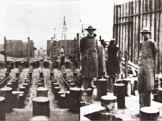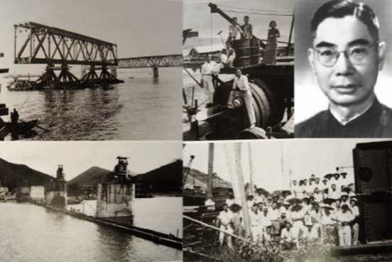 茅以升带领北洋师生在钱塘江大桥建筑工地