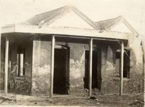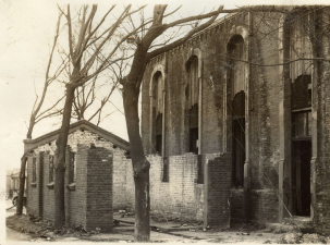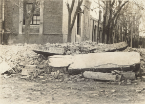门窗拆毁墙壁亦多破坏,照片前部断砖残瓦系破坏倒塌之墙垣