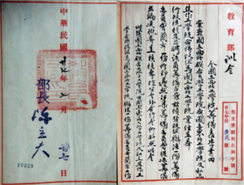 1937年9月10日,北洋工学院依照教育部训令与北平大学、北平师范大学和北平研究院合组国立西安临时大学,学校于1937年11月1日开学,15日正式上课。