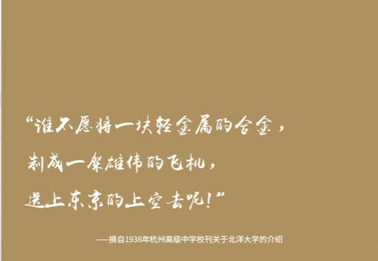 “九一八”事变后,航空救国的呼声,高入云霄,全国各工科学校的机械系,都有偏向航空工程的趋向。由于北洋大学有着雄厚的航空和机械研究的基础,1934年中国第一台飞机发动机诞生于北洋。此后1935年国民政府在北洋大学正式设立航空系。