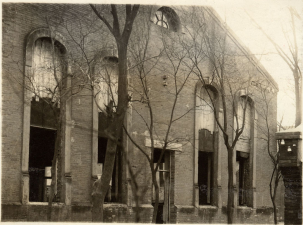门窗洞然全部拆去西面前部校舍屋顶亦被拆毁零星残破砖瓦仍不知下落