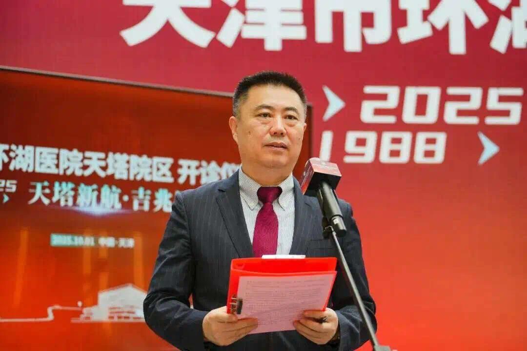 最后,王栩冬同志讲话,他高度认可了环湖医院在神经疾病诊疗领域的雄厚学科实力,更盛赞此次与脑机交互与人机共融海河实验室的合作,将为医疗科技发展注入强大动力。他表示,天塔院区开诊,是天津优化医疗资源布局、践行便民惠民宗旨的重要举措。“一院两区”协同发展,必将为患者提供更优质、更便捷的神经专科服务。随后,王栩冬同志郑重地宣布:天津市环湖医院天塔院区正式开诊。