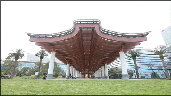 这是刘方磊对于建筑设计的执着。主会场的改造主要集中于雨棚,以“丹冠飞羽飘海丝”为理念,将中国文化渗入厦门金砖设计。刘方磊的灵感来自于厦门的市树和海洋。厦门市的市树是凤凰树,凤凰花就好像是丹凤之冠,而凤凰树的叶子就好像飞凰之羽毛;凤凰在中国文化中有吉祥的寓意,凤凰重生象征中国文化复兴。把凤凰花与凤凰的精神相结合,有了“丹冠飞羽”的概念。厦门是沿海城市,很早就接触海洋文化,海上丝绸之路是东南沿海文化圈、福建文化圈的原点。丝绸和海洋都会带给人飘逸的感觉,刘方磊把这种感觉固化成建筑语言,厦门的市树和海洋结合起来,就有了这个设计理念。这些建筑设计的理念都是体现了中国的传统文化,刘方磊也是力图将中国最美好的东西通过建筑传递给全世界。