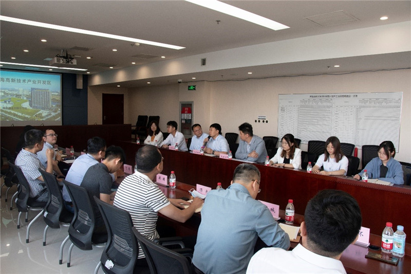 最后,师生们来到天津高新园区的海洋建设大厦与高新区企业代表开展交流座谈,座谈会由高新区科技创新局副局长周升梁主持。座谈会上,滨海新区商务和投资促进局副局长张志辰致欢迎词,他简要介绍了滨海新区的概况,表达了期待未来有更多的天大学子能加入到滨海新区的产业链中,共谋滨海发展新局面。天津大学校友与基金事务处副处长谷钰提到,2020年天津大学与天津市滨海新区人民政府签署了深化战略合作框架协议,其中“合作汇聚天津大学海内外校友资源助力新区经济转型升级”为重点内容之一;去年年底,天津大学滨海新区校友之家成立,以此为阵地,为天大校友、毕业生落地滨海提供全方位服务;他希望通过本次活动,未来进一步促进学生与企业的多向交流,引导更多的天大毕业生能选择滨海就业创业,为滨海新区的发展贡献天大力量。