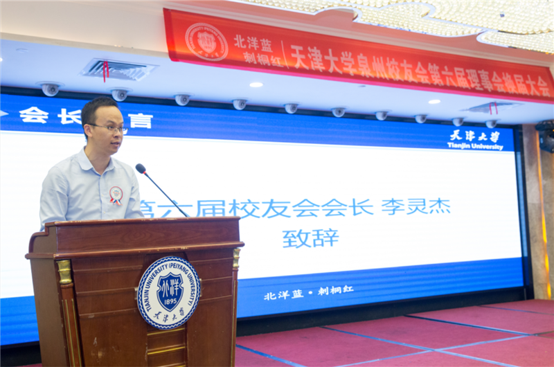 第六届理事会会长李灵杰发表当选感言。他首先向与会校领导以及全体校友们表示感谢,他回顾了泉州校友会在老一辈校友的辛勤努力下辉煌的发展历程,介绍了校友会的发展建设情况和下一阶段的校友会建设计划。他表示,今后泉州校友会将继续加强校友间的联系,团结更多校友,凝聚校友力量,将泉州校友会建设得更好,为校友成长、为母校发展、为泉州经济社会发展助力。