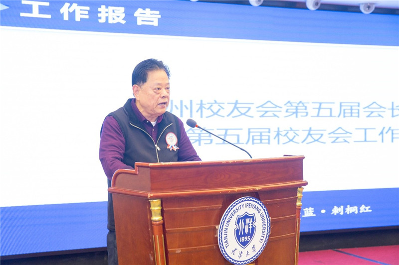 大会上,天津大学泉州校友会第五届理事会会长李天仁代表上一届理事会向全体校友做了工作汇报。李天仁在汇报中说到,泉州校友会多年来秉承“实事求是”的校训,赓续“爱国、爱校、爱家乡”的情缘,力行“三个服务”,使“北洋蓝”的天大底色,在泉州大地绽放出鲜艳的“刺桐红”,红遍泉州社会经济发展的各个领域。