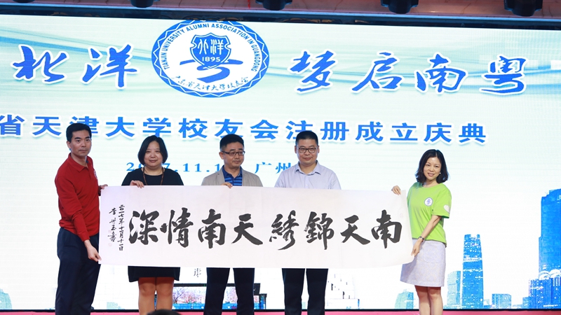 据悉,广东省天津大学校友会成立于1984年,在罗明燏、张寅、阳至忠、曹洪、张尧等历任会长及理事会和秘书处的带领下,校友会不断发展壮大。广东省天津大学校友会于2016年初启动社团注册工作,2017年1月8日召开了会员大会,2月获社团法人证书。广东省天津大学校友会自成立以来一直与母校心连心,百年校庆时广东校友会组织了大规模爱心捐款活动, 120周年校庆时向母校捐赠大型端砚, 端砚铭文“巍巍学府北洋高”,取自校歌原句,图案为桃李芬芳,寓意母校一百二十年来造就无数国之栋梁。