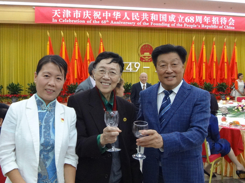 9月29日下午,天津市庆祝中华人民共和国成立68周年招待会在天津礼堂举行。天津市委书记李鸿忠,市委副书记、市长王东峰,市人大常委会主任肖怀远等市领导同志与中外各界人士代表欢聚一堂,共同庆祝共和国华诞。中国工程院院士、天津大学化工学院教授王静康,天津大学药物科学与技术学院党委书记冯翠玲,以及华北设计总院第一设计研究院院长吴凡松、天地伟业公司董事长戴林等天大校友受邀出席,天大人在国庆招待会共叙友情、互致节日问候。