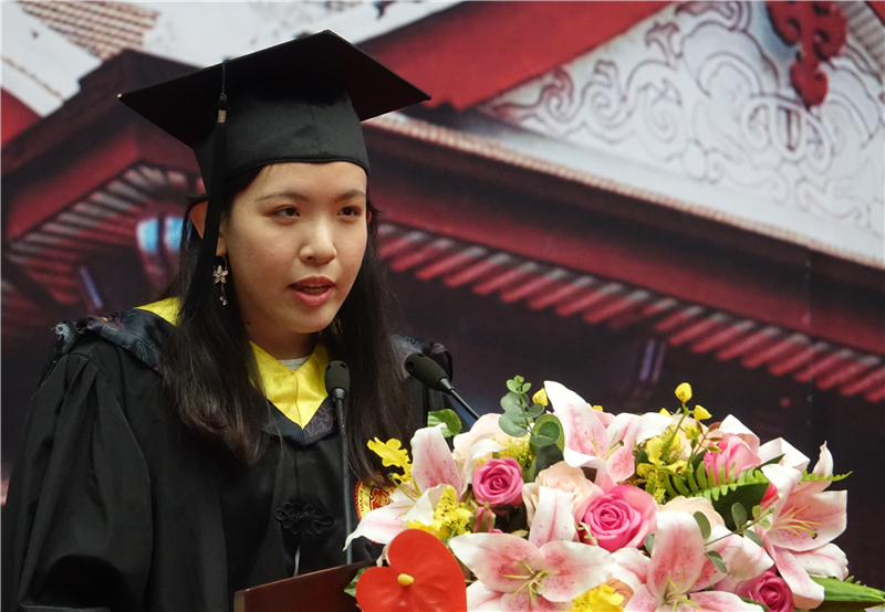 大家下午好!我叫傅敏明,来自印度尼西亚,就读于天津大学计算机科学与技术专业。在这里,我想要感谢来自印尼的1964届天大校友林金将董事长给我提供企业奖学金让我可以在天大上学。今天,我非常荣幸天津大学给我这样宝贵的机会,在毕业离别之际,让我代表所有的留学生说出我们的心声。