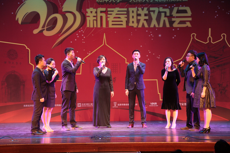 在欢快热烈的气氛中,联欢会正式开始,20多个节目精彩纷呈,赢得校友们的阵阵掌声,从女生独唱到豫剧表演,从北洋八人组到古琴独奏,再从街舞表演到京剧彩唱。最后全场演员和观众共同合唱《北洋校歌》,在全场的歌声中结束了联欢会。