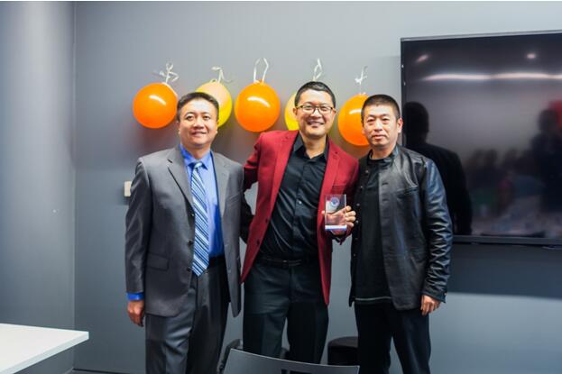 当天的聚会由会长姜国梁主持,姜会长介绍了校友会一年以来的工作。校友会理事会一致决定设立杰出校友贡献奖,不定期鼓励,表彰在个人领域做出突出成就,和在校友会工作领域做出突出贡献的优秀校友。经理事会决定,2016年的校友杰出贡献奖授予了李秉光(90级工管)校友。李秉光校友是李秉光教育中心创始人,他曾任美国Shenandoah University大学商学院全职教授,去年独家赞助并冠名美国大华府地区第一只排球联队,在大华府反响很大。中华人民共和国驻美利坚合众国大使馆参赞刘自力(82级建筑)校友为李秉光颁发了奖章。