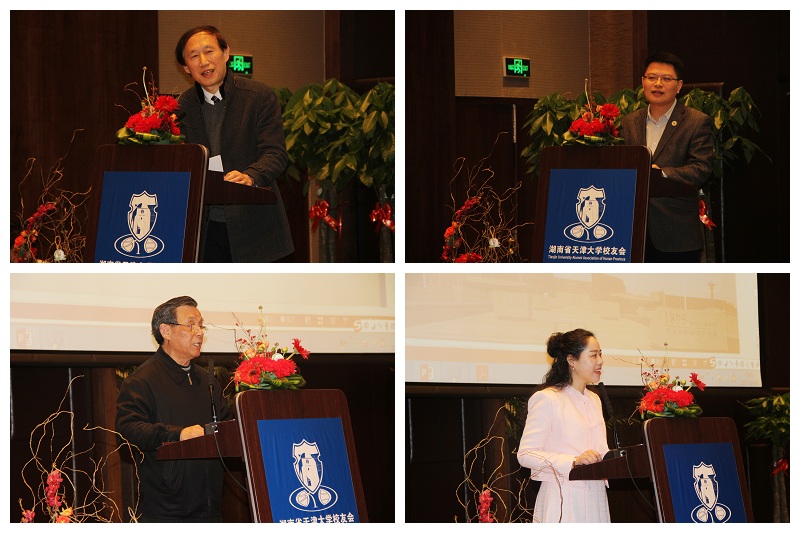 湖南校友会会长汪晓兵致欢迎词并就湖南校友会第五届的工作作了报告。副会长曾杨回顾了湖南校友会申报天津大学第十一届世界校友代表大会的历程。副会长黄合来通报了天津大学第十一届世界校友代表大会承办工作进展情况,并就征集校友志愿者事宜做了介绍。执行秘书长袁万里汇报了湖南省天津大学校友会成立工作的相关内容。秘书长谭岚对新一届湖南校友会理事会成员作了介绍:长沙华能自控集团有限公司创始人汪晓兵当选新一届会长,李仁发、曾杨、罗建雄、周任军、阎友兵、姚争辉、黄合来当选副会长,谭岚当选秘书长,袁万里当选执行秘书长,王俊当选副秘书长。南开大学湖南校友会会长刘彦以及兄弟校友会代表夏英彪、常恒毅和徐树宪分别致词祝贺。会上,刘建平代表学校向湖南省天津大学校友会授予会旗。