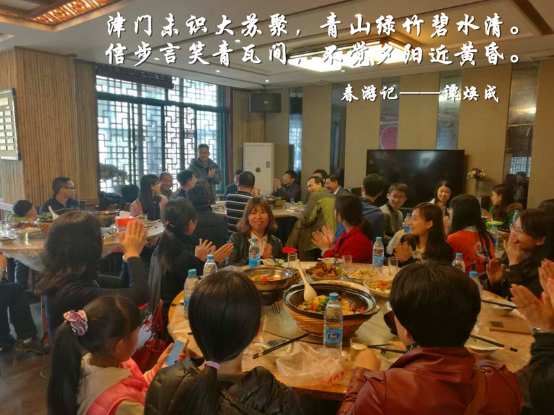 2017年4月8日星期六,天津大学江苏校友会(以下简称:校友会)一行近40人相约来到苏皖交界处南京市江宁区横溪街道石塘竹海进行了“追忆求学时光 凝练校友友谊”为主题的春游活动。此次活动由校友会现任会长朱绍玮和副会长方德广策划,秘书长陈绍辉、副秘书长汪辉、李薇以及热心校友李侃协助组织,广大校友积极响应和参与,并有幸邀请到了杖朝之年的老会长王宝仁。为了此次活动的顺利举办,方德广和汪辉精心选择举办地点,提前实地调研安排好流程和细节,并利用自己人脉和资源安排大巴车在市区交通要道处停靠接送校友。