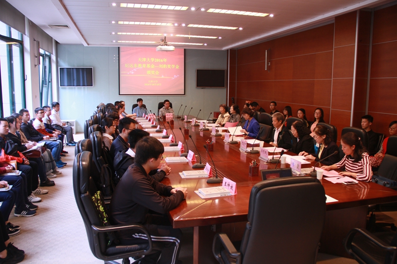 本站讯10月15日上午,以我国已故著名科学家刘豹教授命名的新生奖学金在天津大学会议楼第一会议室举行首次颁奖,该奖学金由刘豹教授弟子、天大美国校友纪远东捐资设立,自今年起每年奖励各学院录取的天津籍考生第一名及自动化、精仪等9 个学院河北省考生第一名,每人 1500 美元。经评选,33位2016级新生获奖。