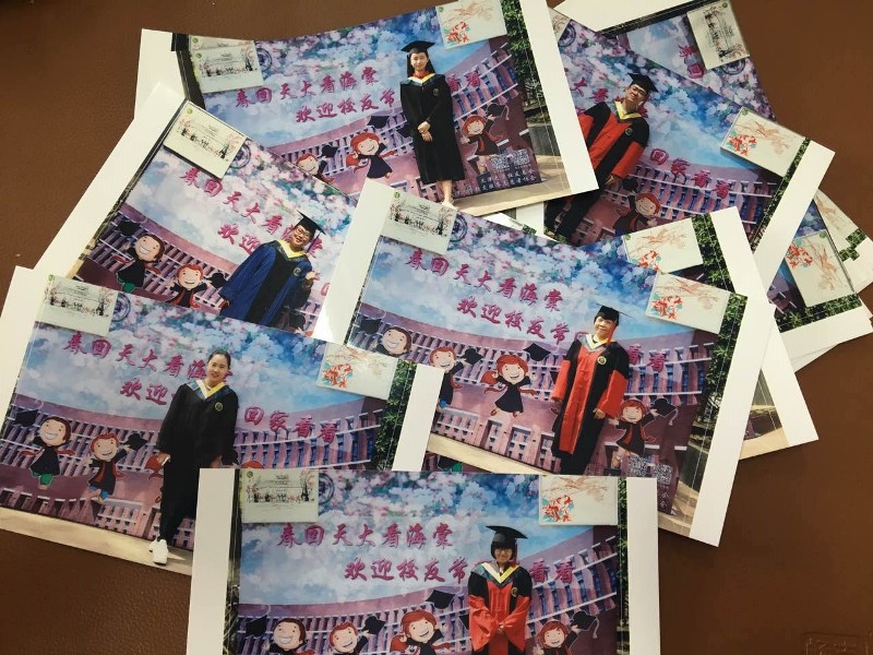 同时校友总会还在活动现场搭建了背景板,校友们身穿由校友总会精心准备的学位服,手持“祝福语”,由专业摄影师拍摄纪念照并在现场即时打印,该活动对校友完全免费。那一张张的照片,不仅体现了校友们对母校的深深祝福,也体现了母校对校友关心母校发展的感激之情。在卫津路校区第四教学楼内,学校特别为校友们开辟了“海棠花季”校友专享空间。在这里,校友们不仅可以填写明信片送出祝福,还可以稍作休息、享用免费的茶水和甜点。